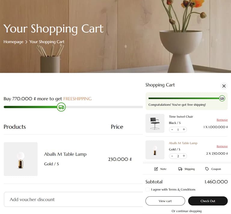 A clean, responsive cart drawer designed for